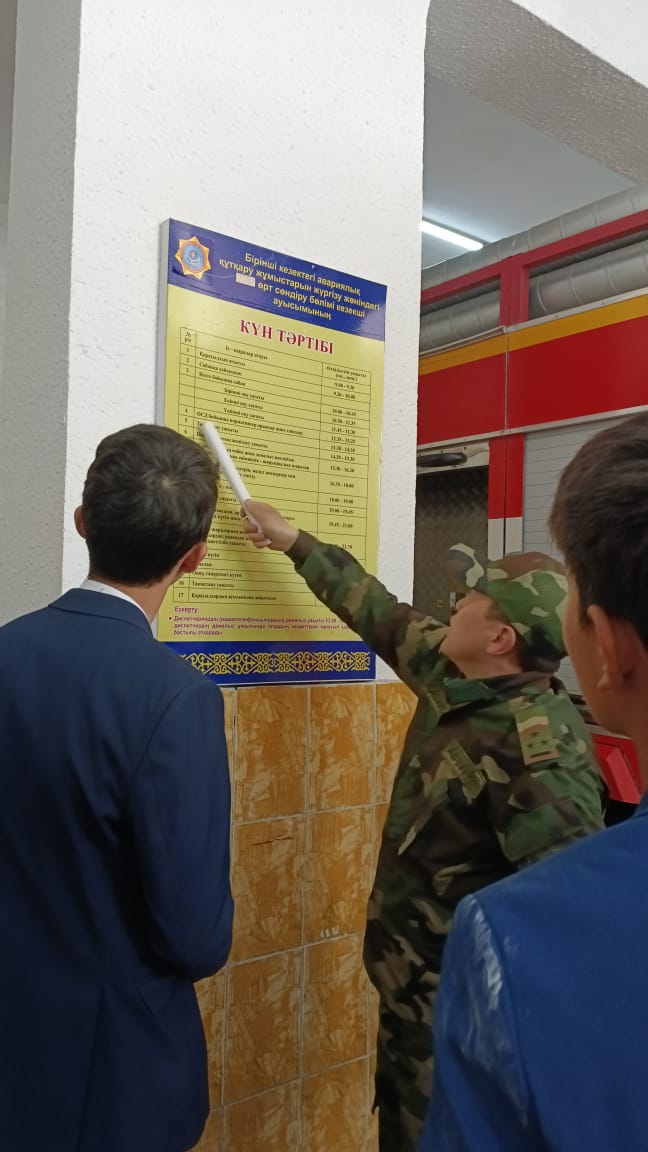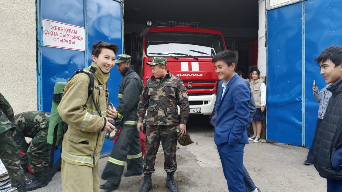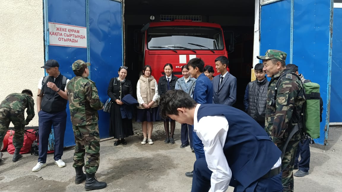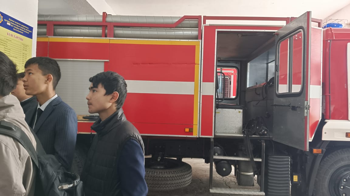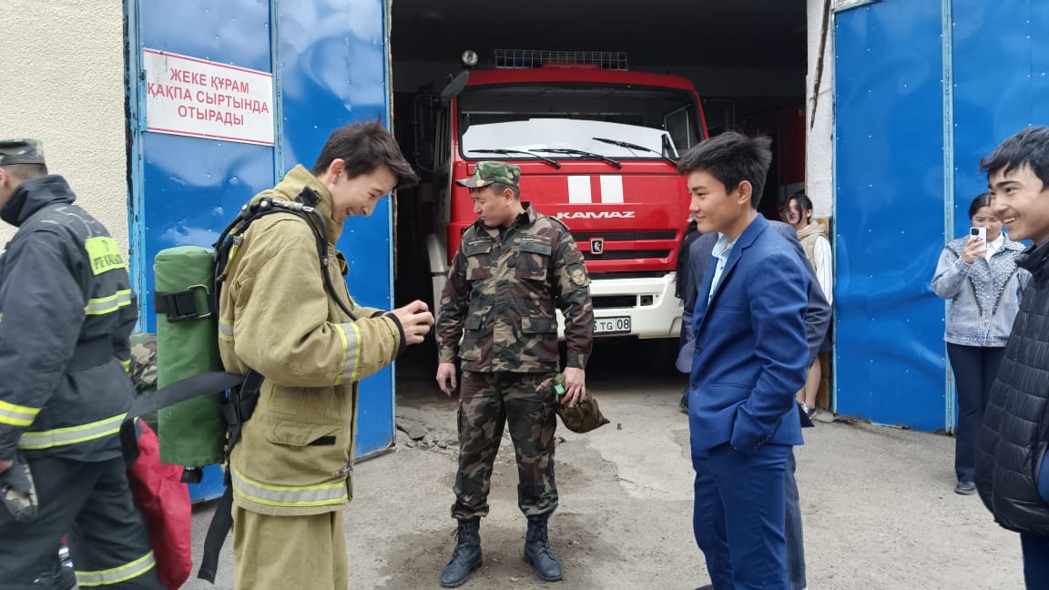 Мектептің кәсіби-бағдар беруші педагогы Скакова Самал Бауыржановна Шу қаласындағы өрт сөндіру қызметіне 9,11 сынып білім алушыларымен «Ашық есік" күніне орай экскурсия ұйымдастырды. Ғаламдағы ең қауіпті мамандықтардың бірі – өрт сөндіруші қызметі. Білім алушылар өрт сөндіру қызметінің қаншалықты жауапты да ауыр қызмет екенін өз көздерімен көріп, өрт сөндіруші киімін киіп, нағыз ер азаматтарға тән мамандық жүректілік пен батылдықты талап ететінін сезінді. Күнде өлім мен өмірдің арасында арпалысып жүрген батырлардың құрал-саймандарын қолдарымен ұстап, атауларымен танысты.