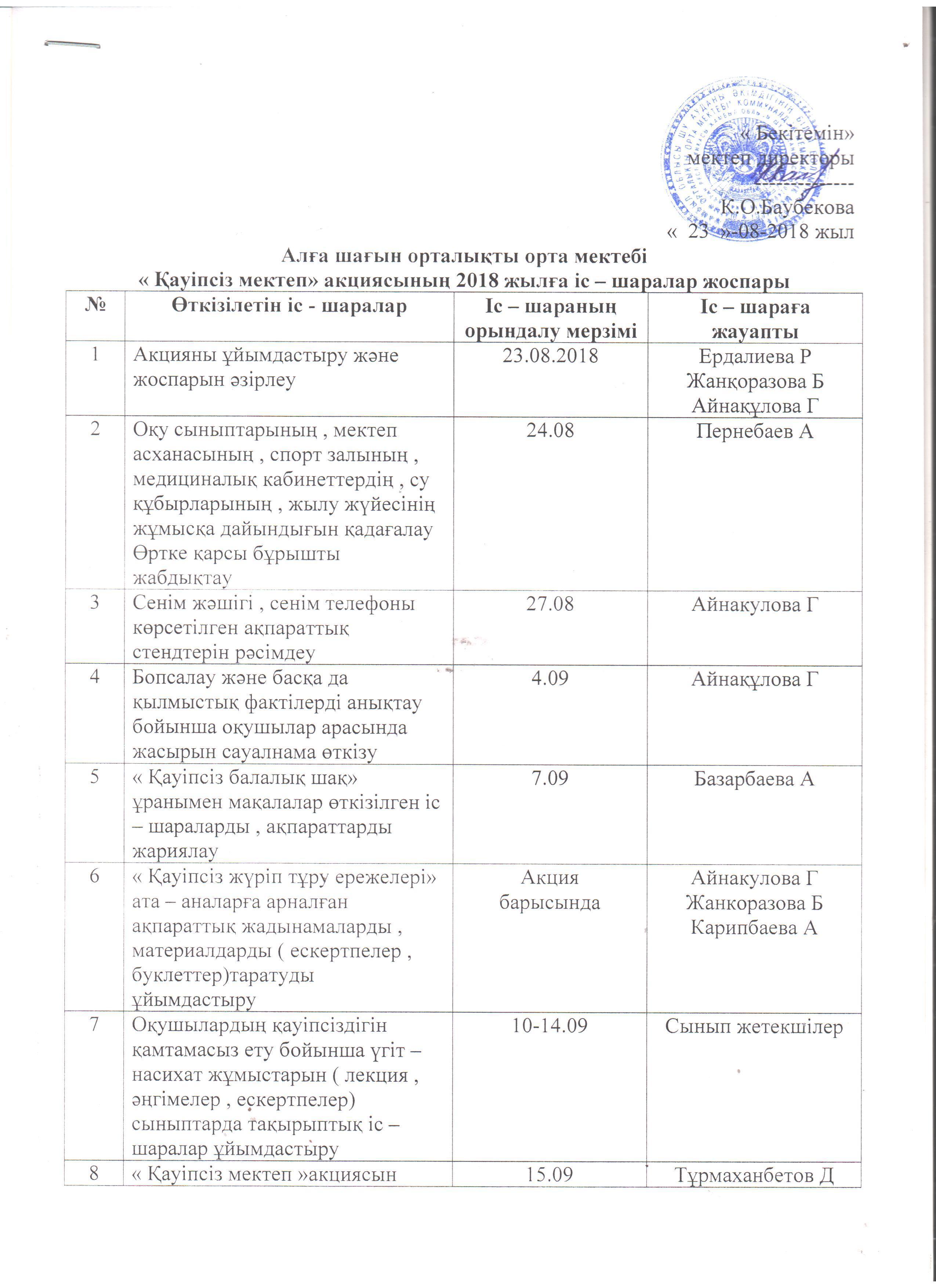 » » "Қауіпсіз мектеп" акциясының жоспары