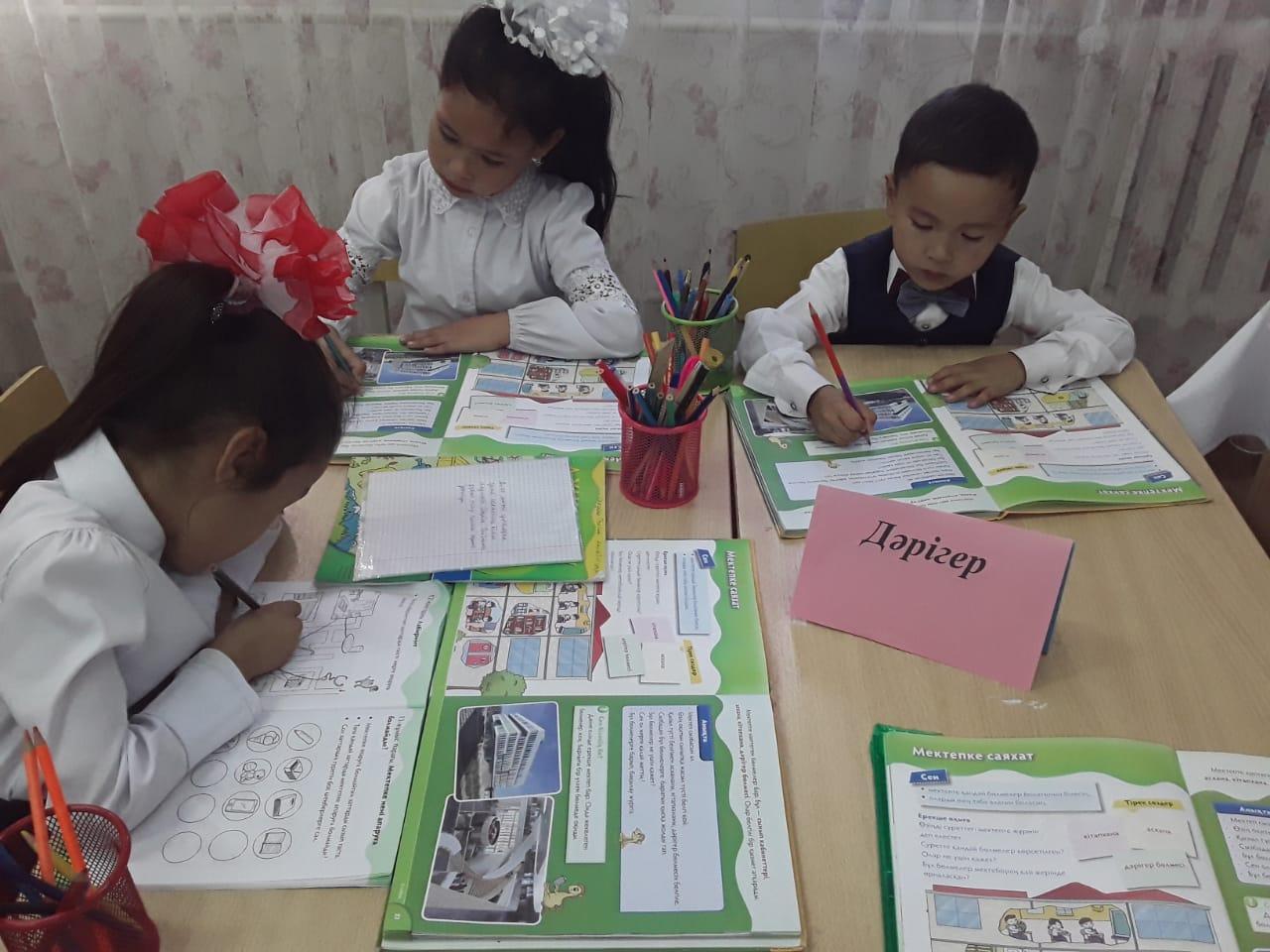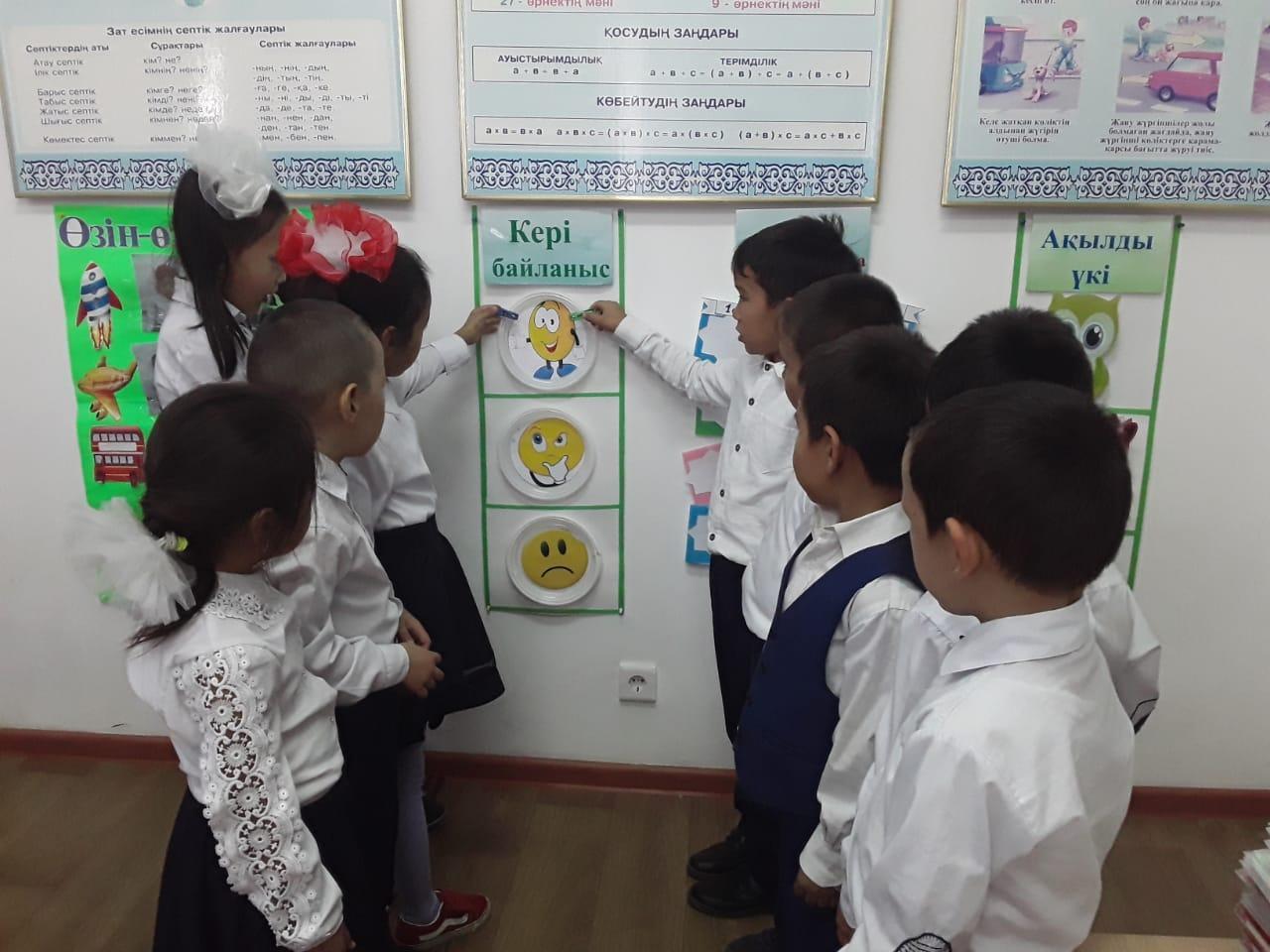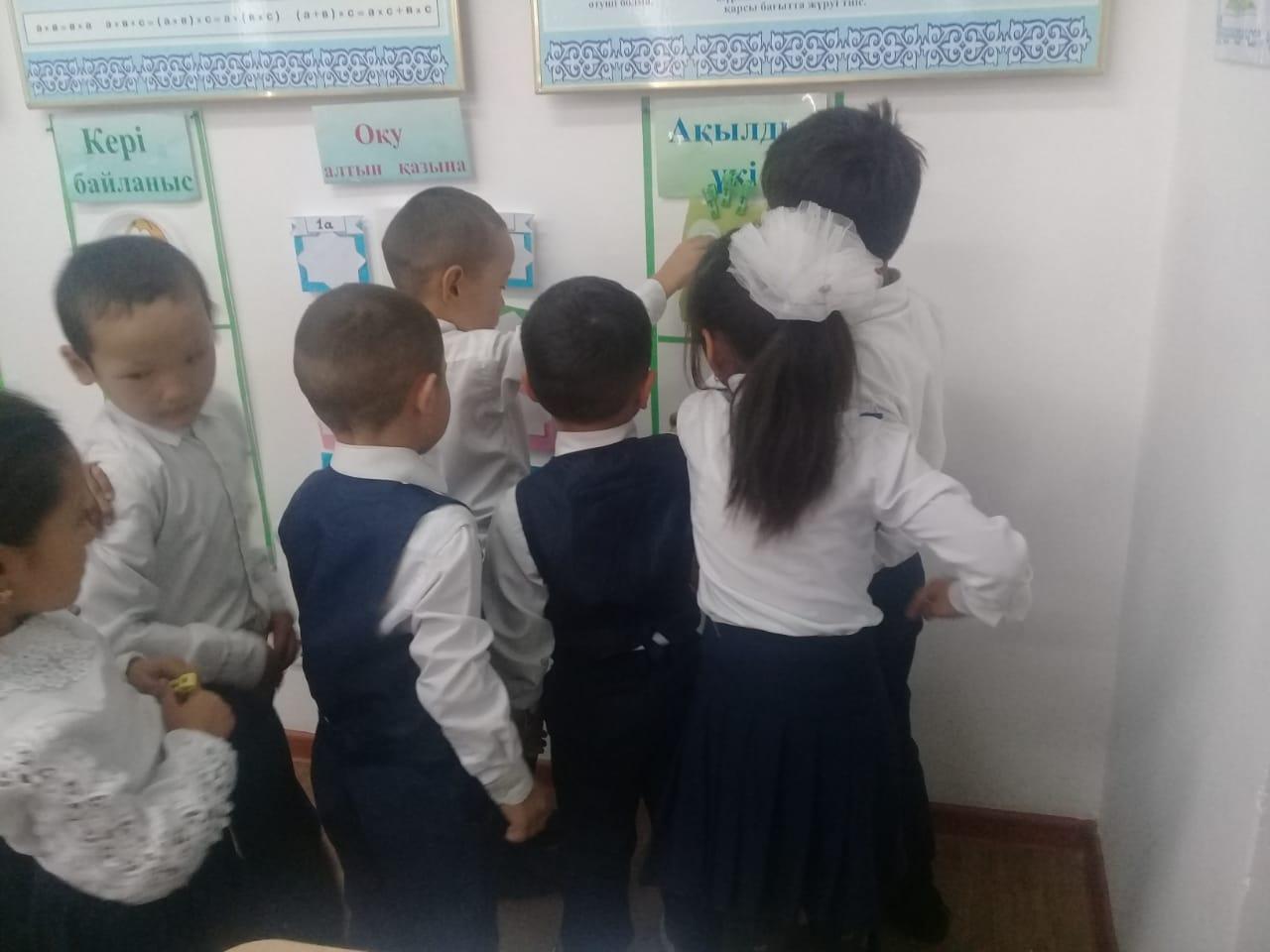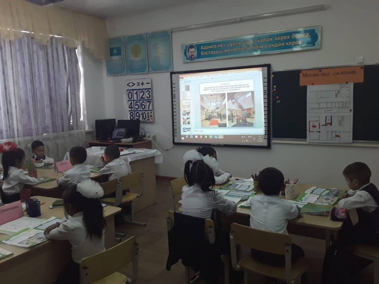 Бастауыш сынып мұғалімі Жапарова Құралай 1 сынып оқушыларымен дүниетану пәнінен «Мектепке саяхат» тақырыбында сабақ өткізді. Оқушылар мектеп сызбасымен жұмыс жүргізді. Бұл сабақта оқушылар өз мектебін жақсы тануға, жабық бөлмеде бағдарлай алу дағдысымен қиялын дамытуға көмектеседі.