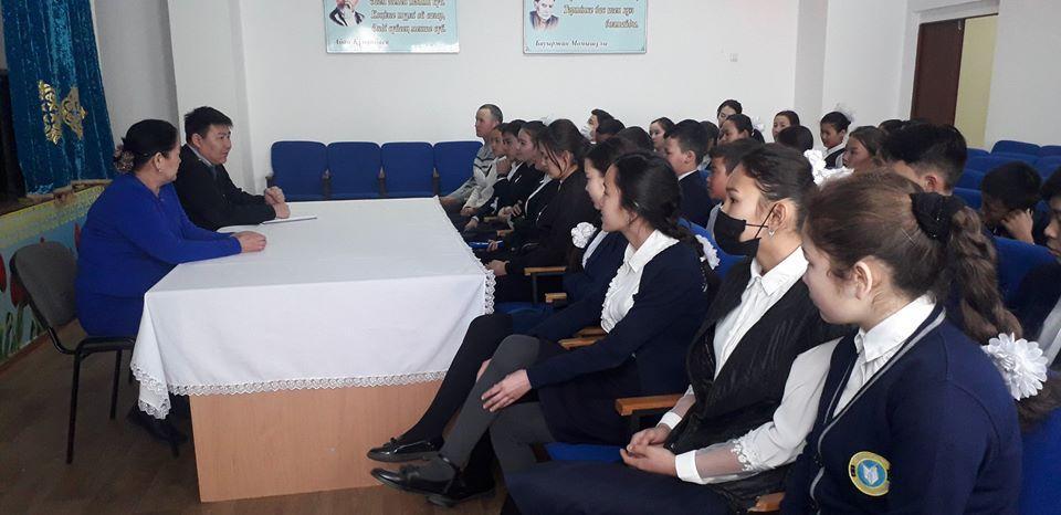 22.01.2020 жылы Алға шағын орталықты орта мектебінде мектеп инспекторы Топашев Нурлан Советханұлы 8-11 сынып оқушыларымен «Жасөспірімдер арасында кәмелетке толмаған балалар арасындағы құқық бұзушылық пен қылмыстың алдын алу» тақырыбында түсіндірме жұмыстарын жүргізіп, кездесу жасады