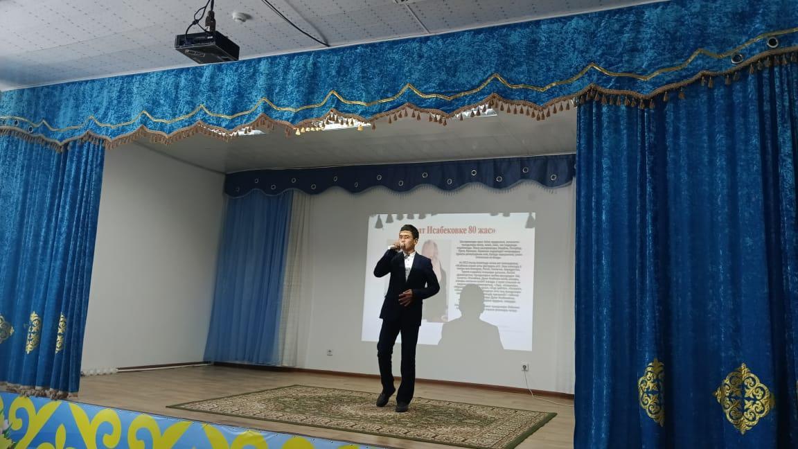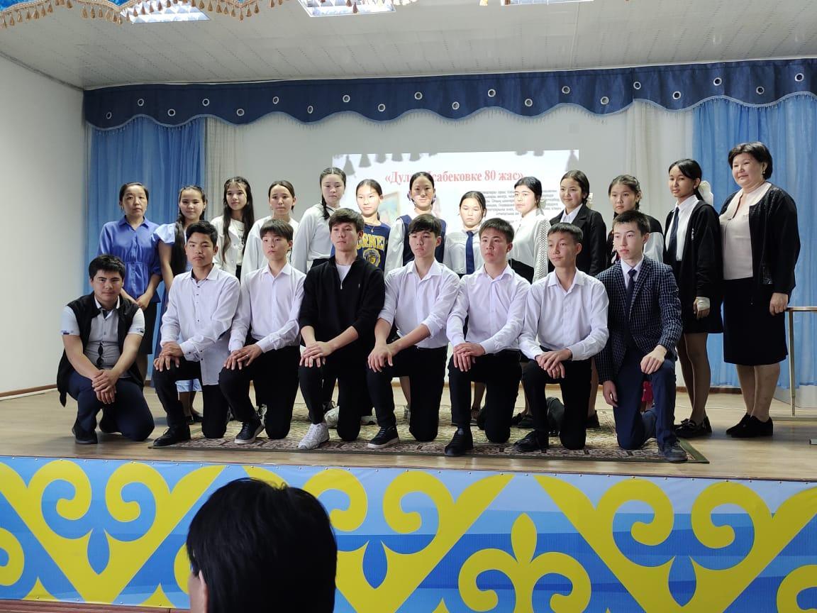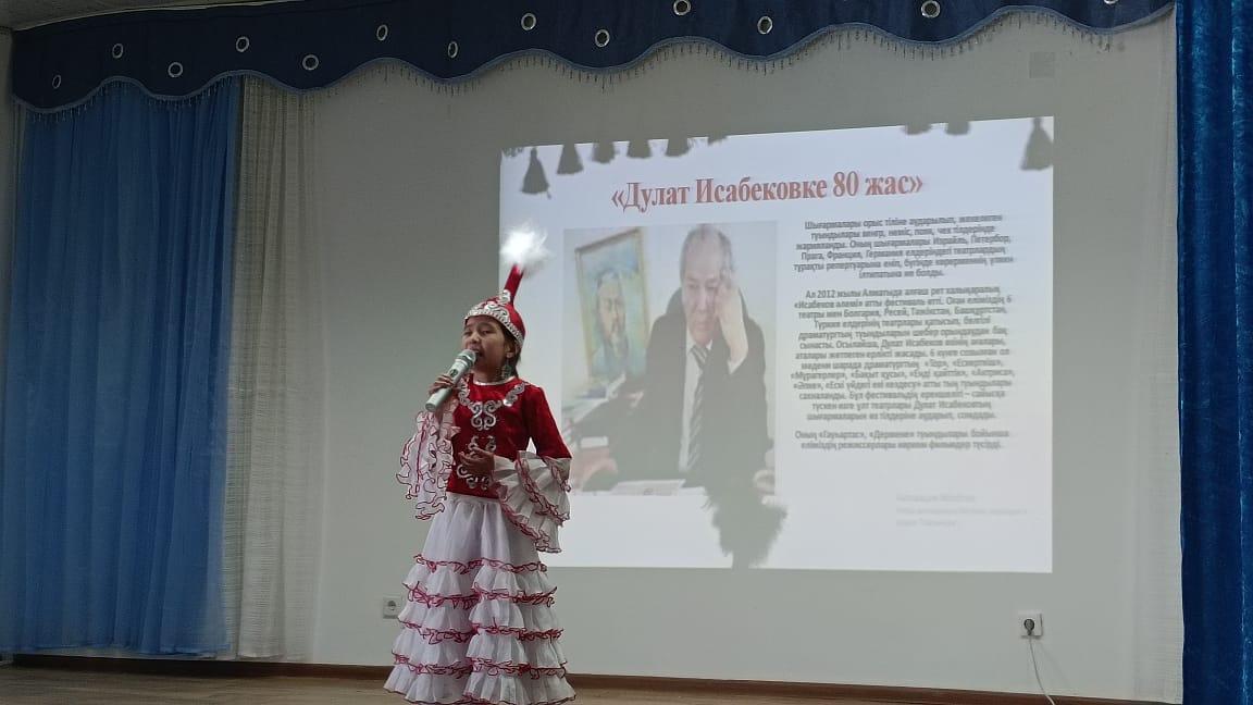 Жамбыл облысы, Шу ауданы, Сауытбек ауылы, Алға орта мектебінде М,Мақатаев атындағы тірек орта мектебі (РО) Дулат Исабековтың 80 жас мерейтойына арнайы, жазушының "Әпке" драмасының желісімен дайындалған танымдық сағатын өткізді.