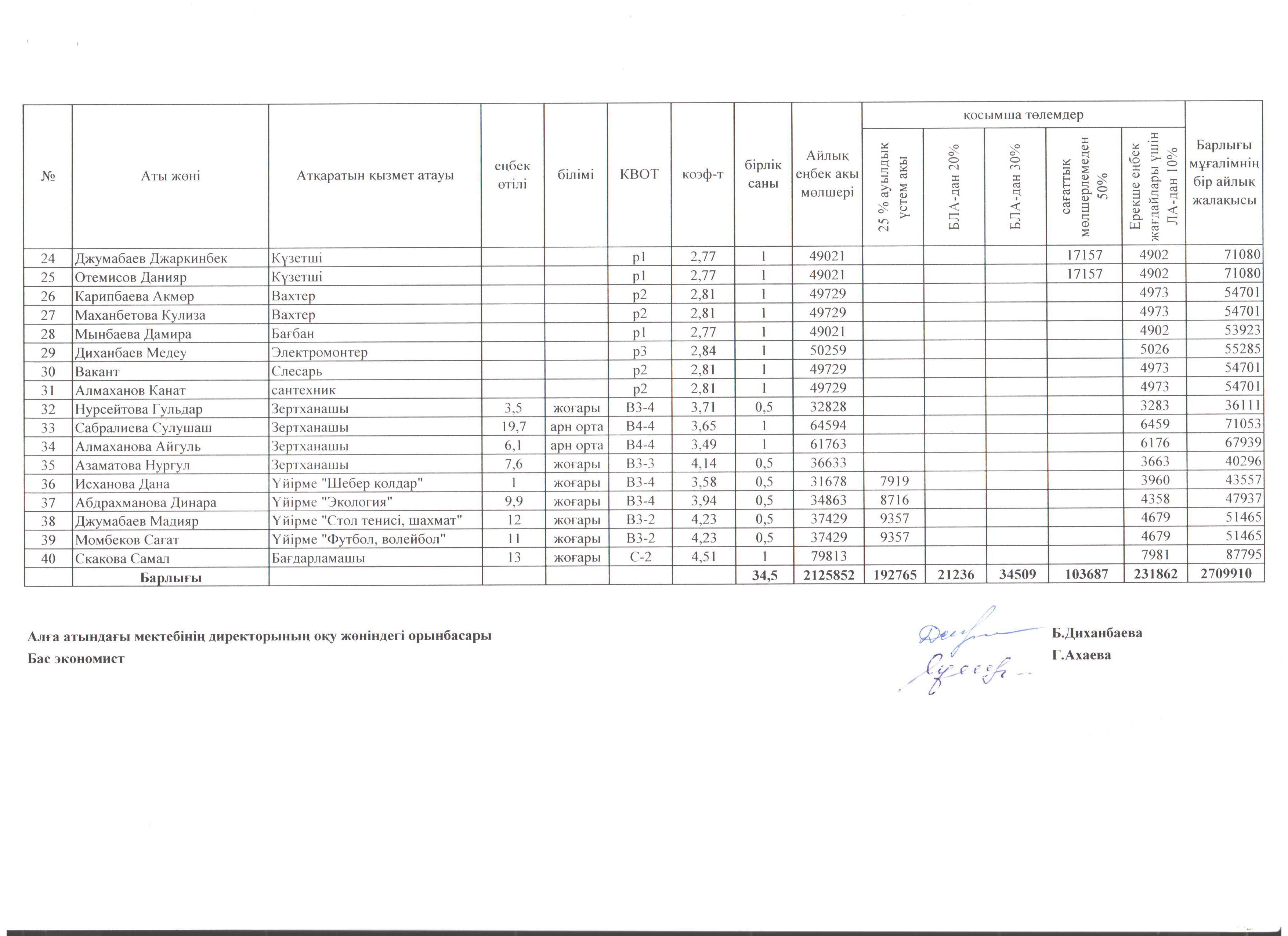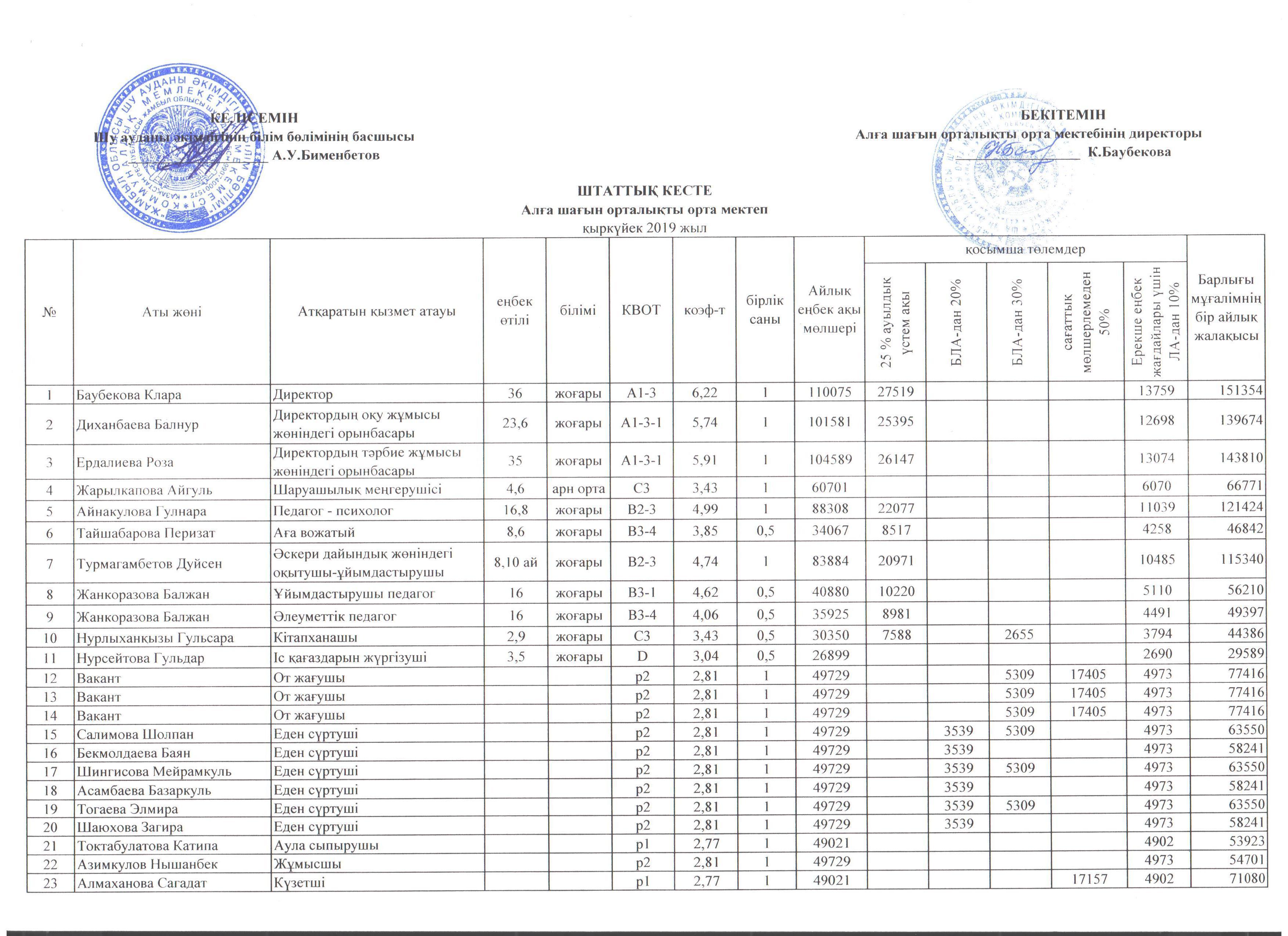 ШТАТТЫҚ КЕСТЕ » Алға шағын орталықты орта мектебі