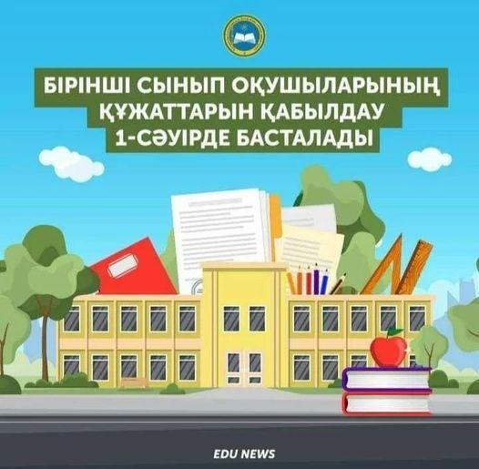 Қазақстан Республикасы Білім және ғылым министрінің 2020 жылғы 24 маусымдағы № 264 бұйрығына сәйкес 2023-2024 оқу жылына 1-сыныпқа құжаттарды қабылдау 2023 жылдың 1 сәуірінен бастап EGOV.KZ электрондық үкіметінің порталы арқылы жүзеге асырылады.