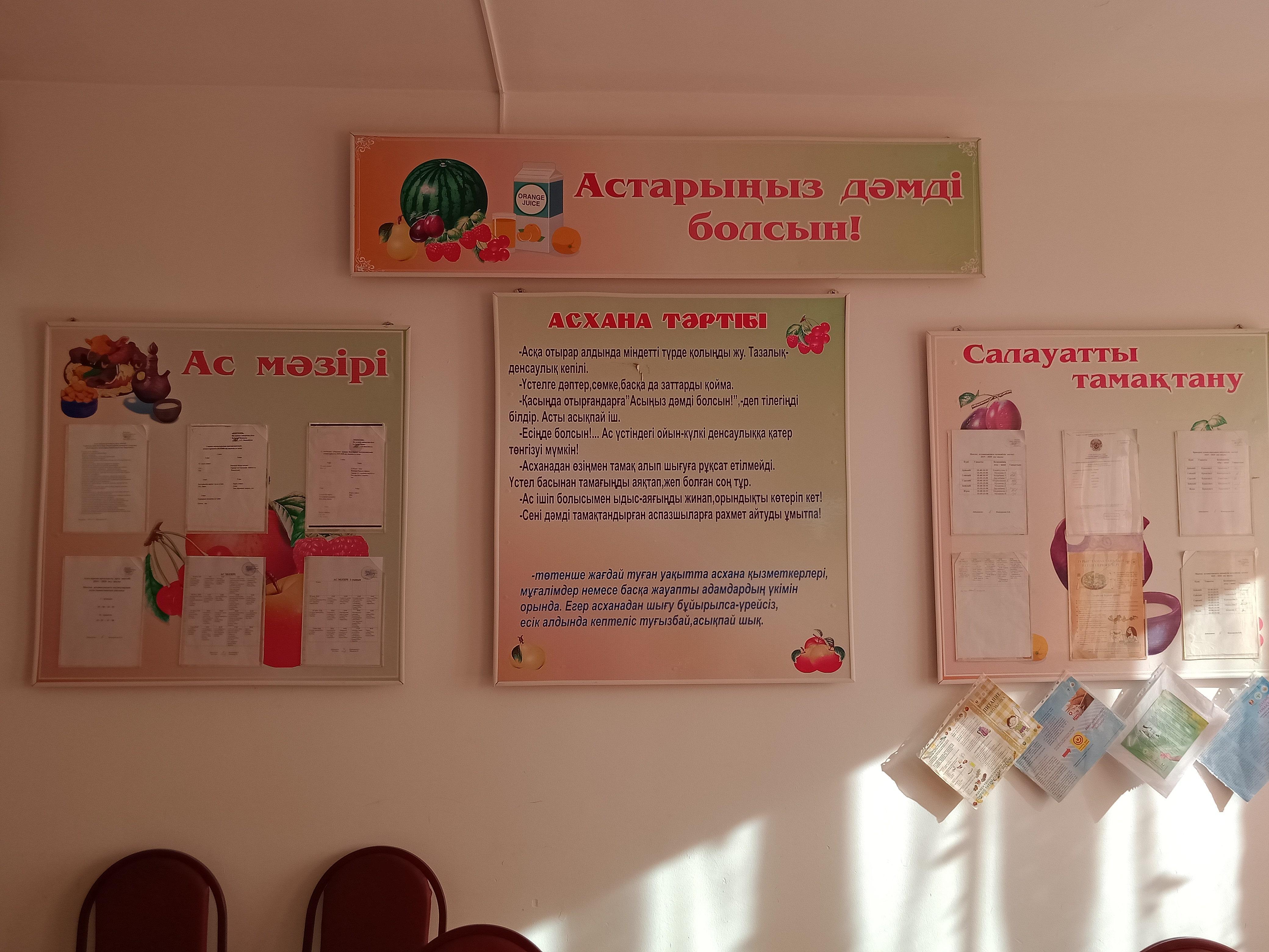 Оқушылардың сапалы тамақтандыруды ұйымдастыру мақсатында құрылған ыстық тамақты бақылау мониторинг комиссия мүшелері мектеп асханасының санитарлық жағдайын тексерді. Оқушылардың ауыз сумен қамтылуы, қол жуу бұрышы, асхана ішінің безендірілуі қаралды.