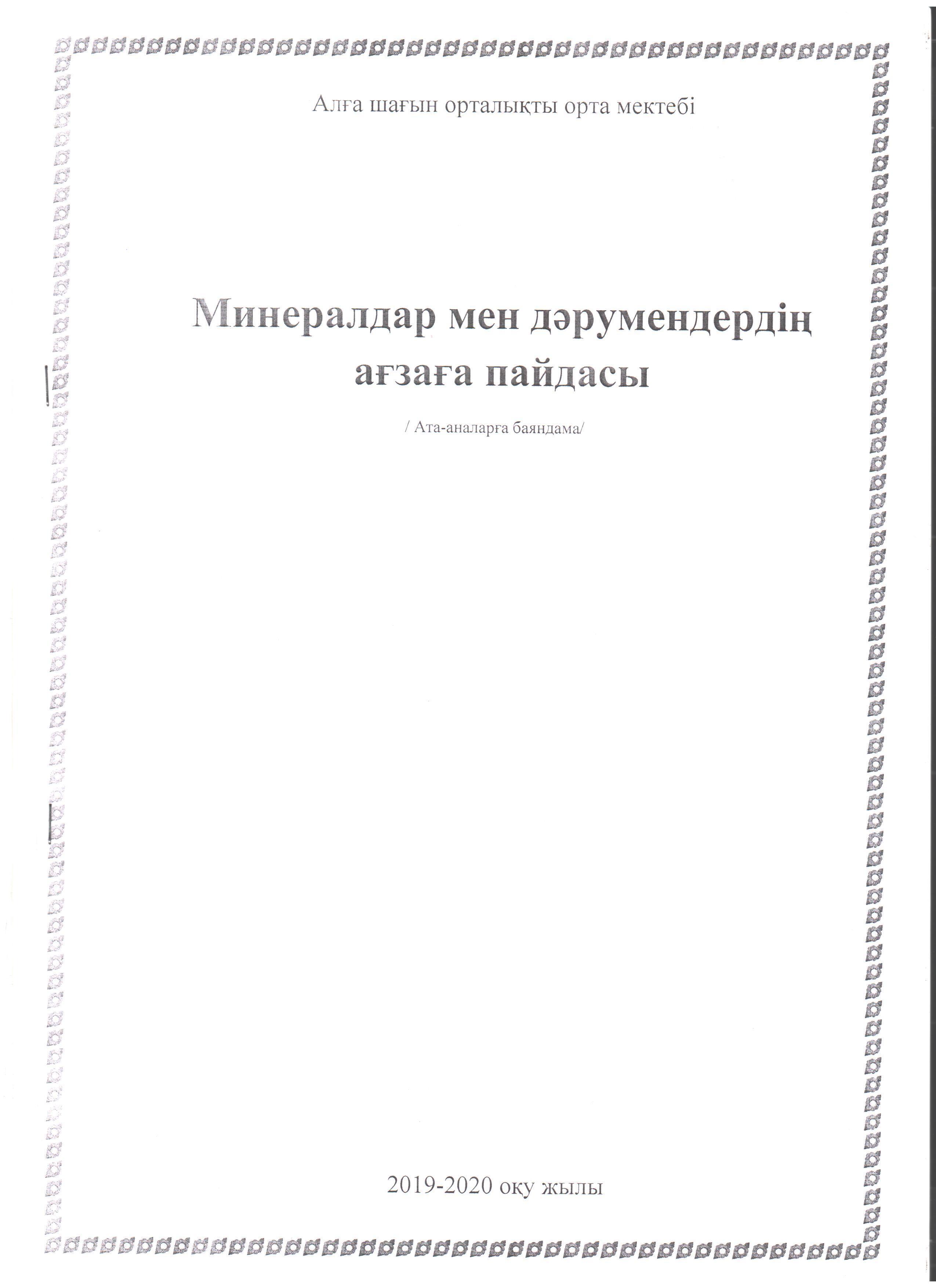 21 февраль 2020 0 1 2 3 4 5 Мектеп асханасы акциясы «Мектеп асханасы» республикалық акциясының барысында мектеп медбикесі Ш.Шаханова «Минералдар мен дәрумендердің ағзаға пайдасы» тақырыбында ата-аналарға баяндама оқыды.