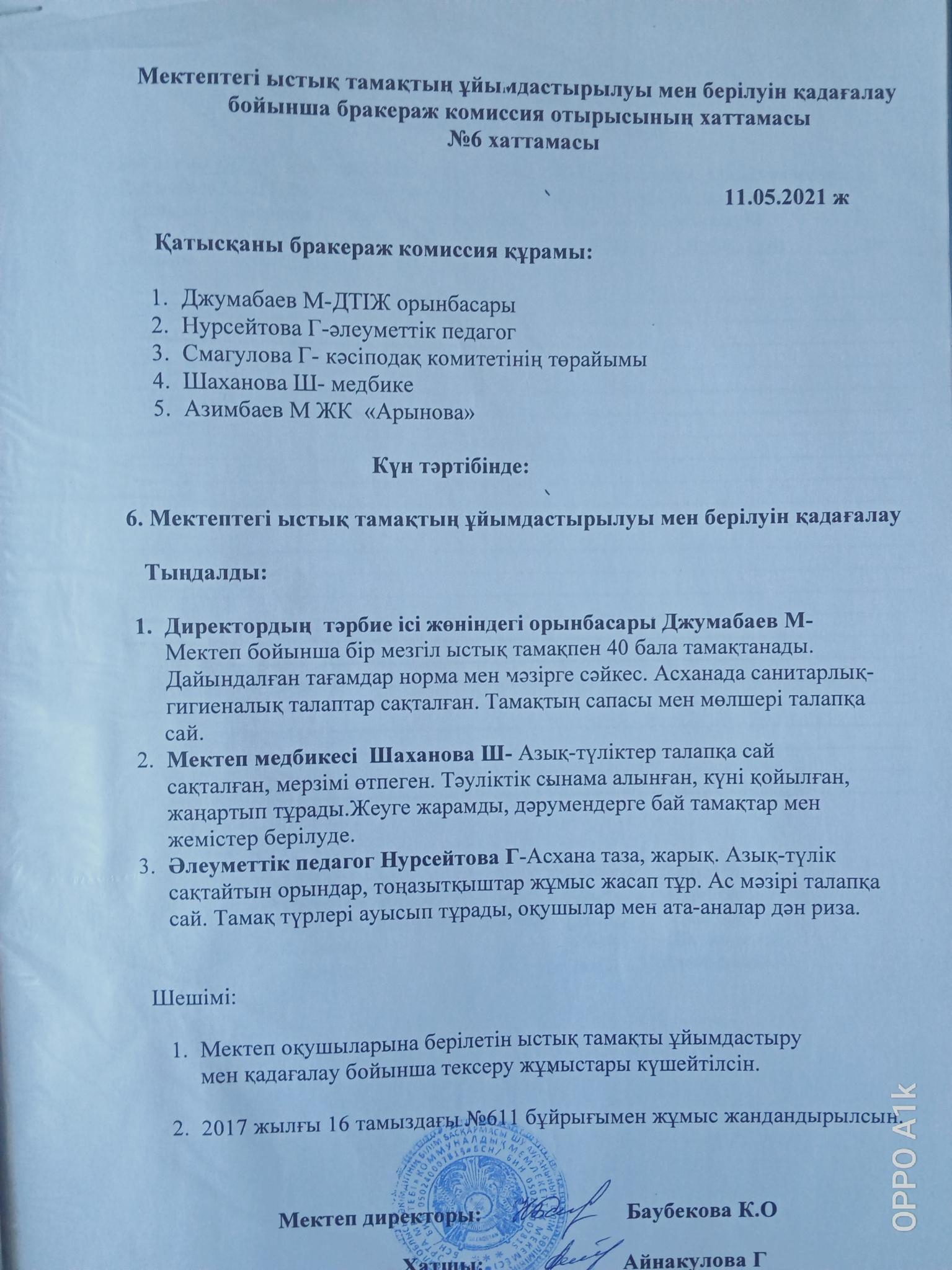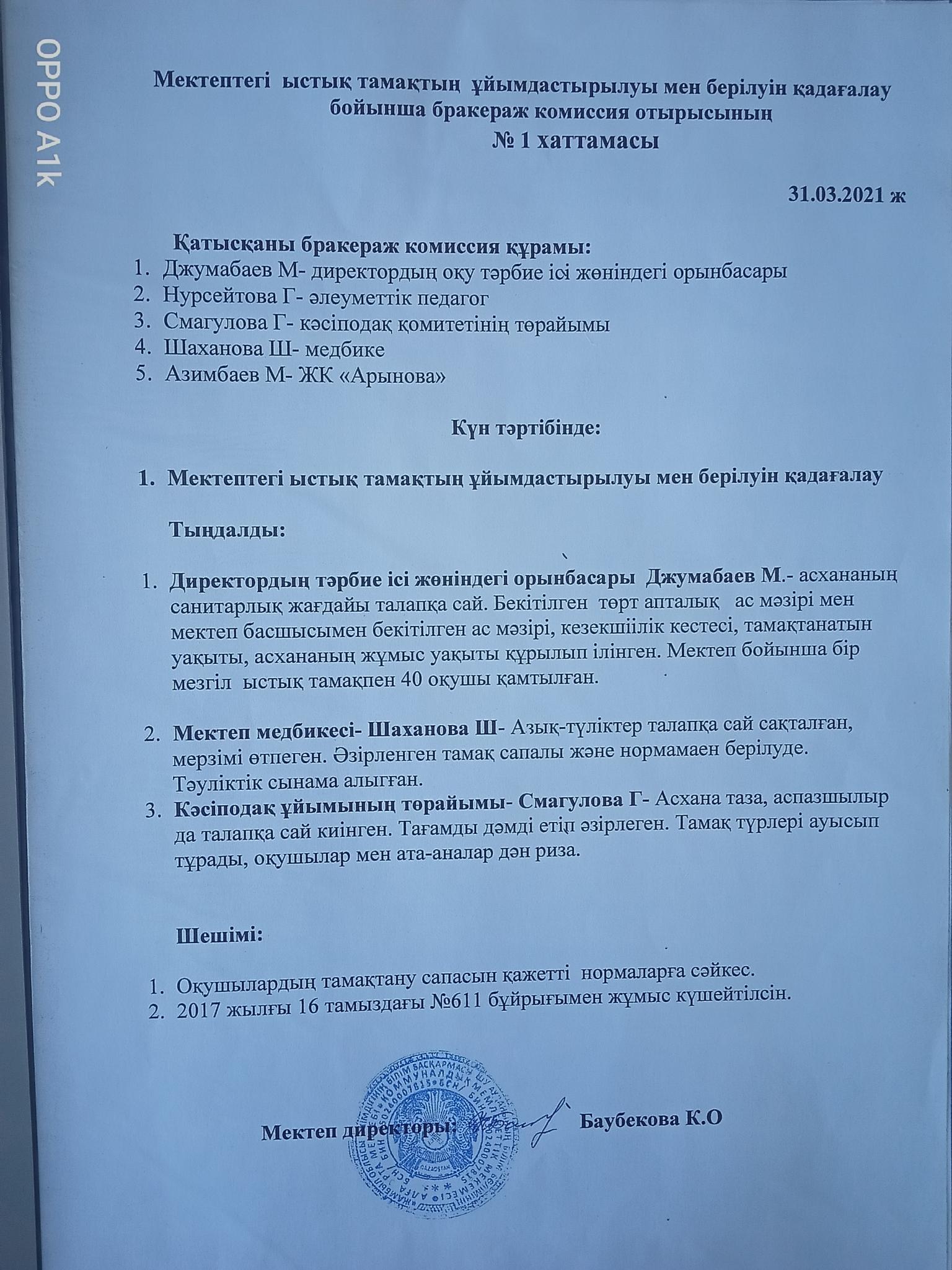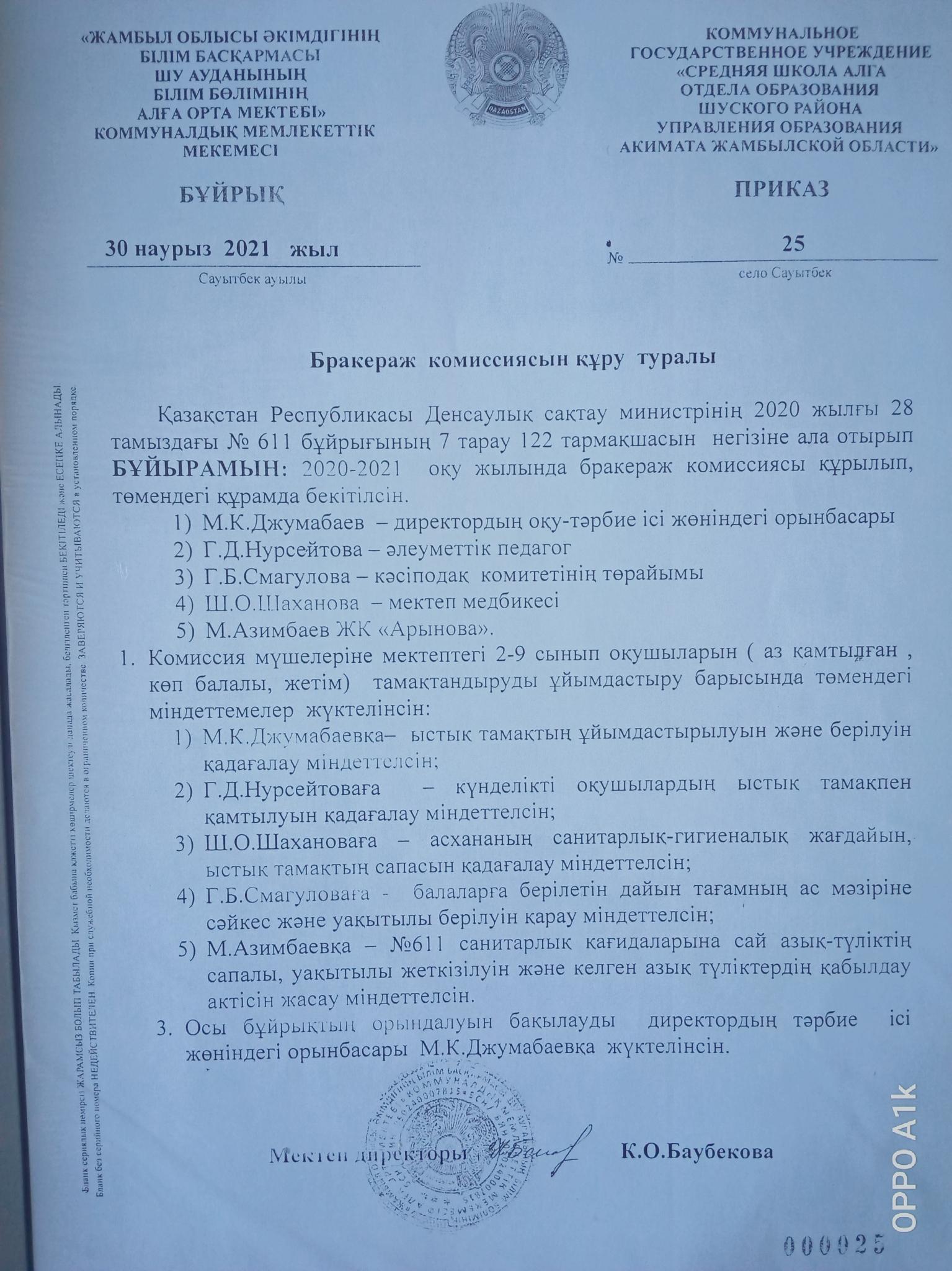 Бракераж комиссиясын құру туралы » Алға шағын орталықты орта мектебі