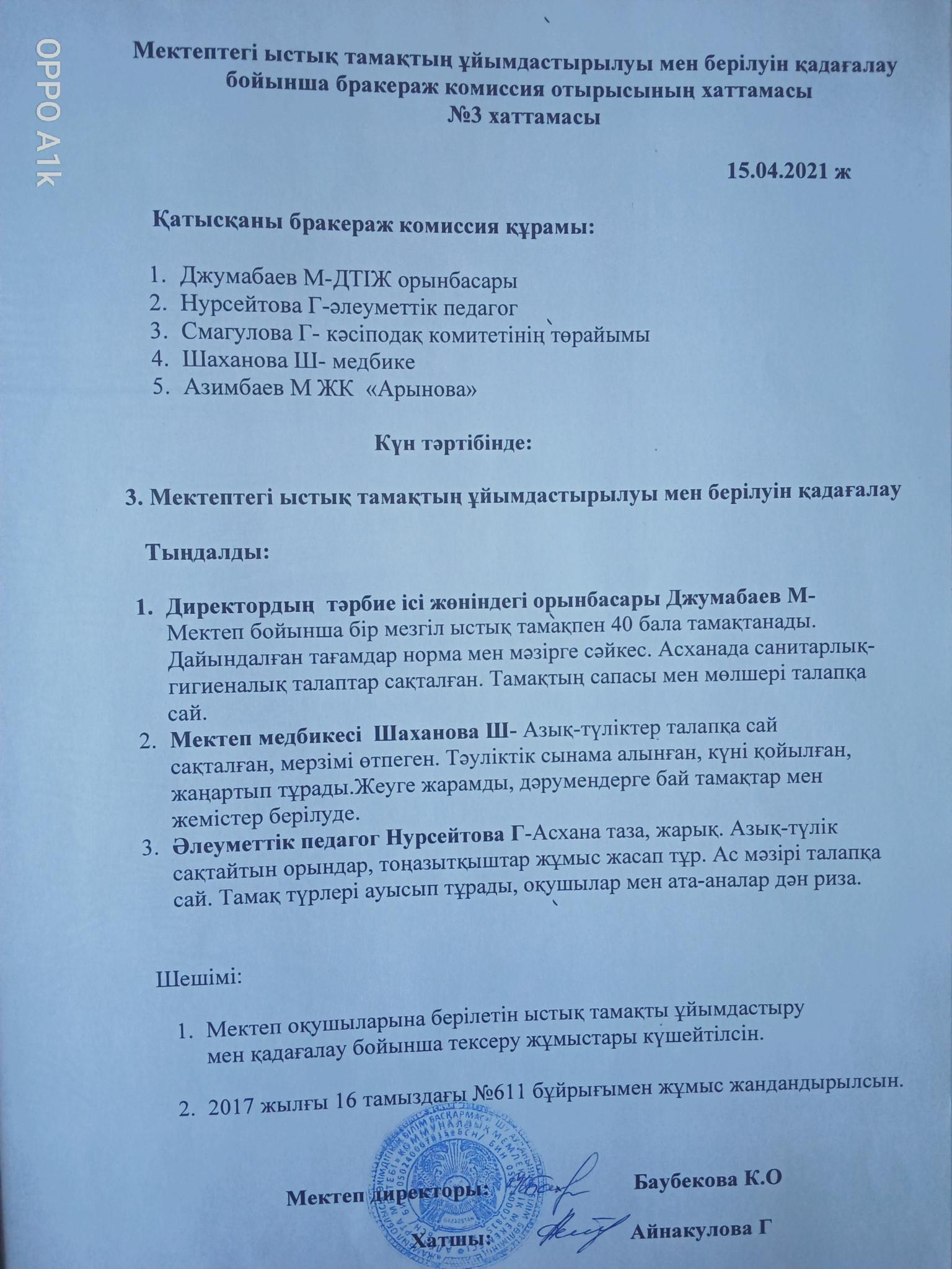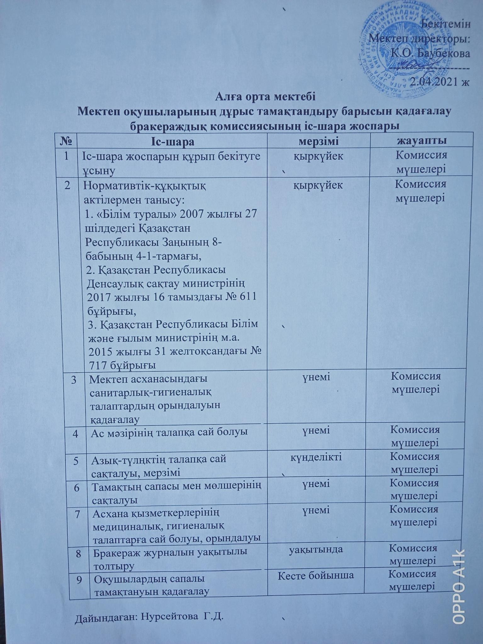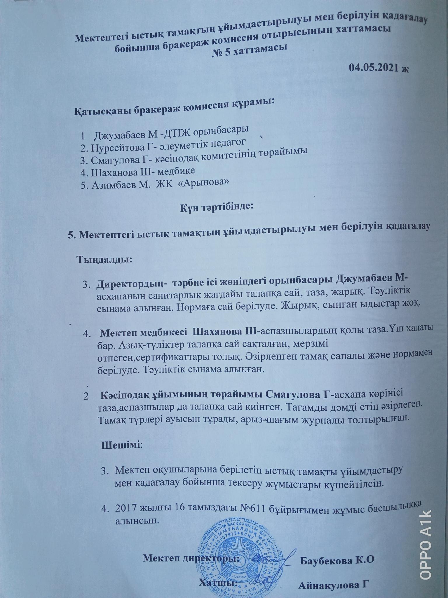 Бракераж комиссиясын құру туралы » Алға шағын орталықты орта мектебі