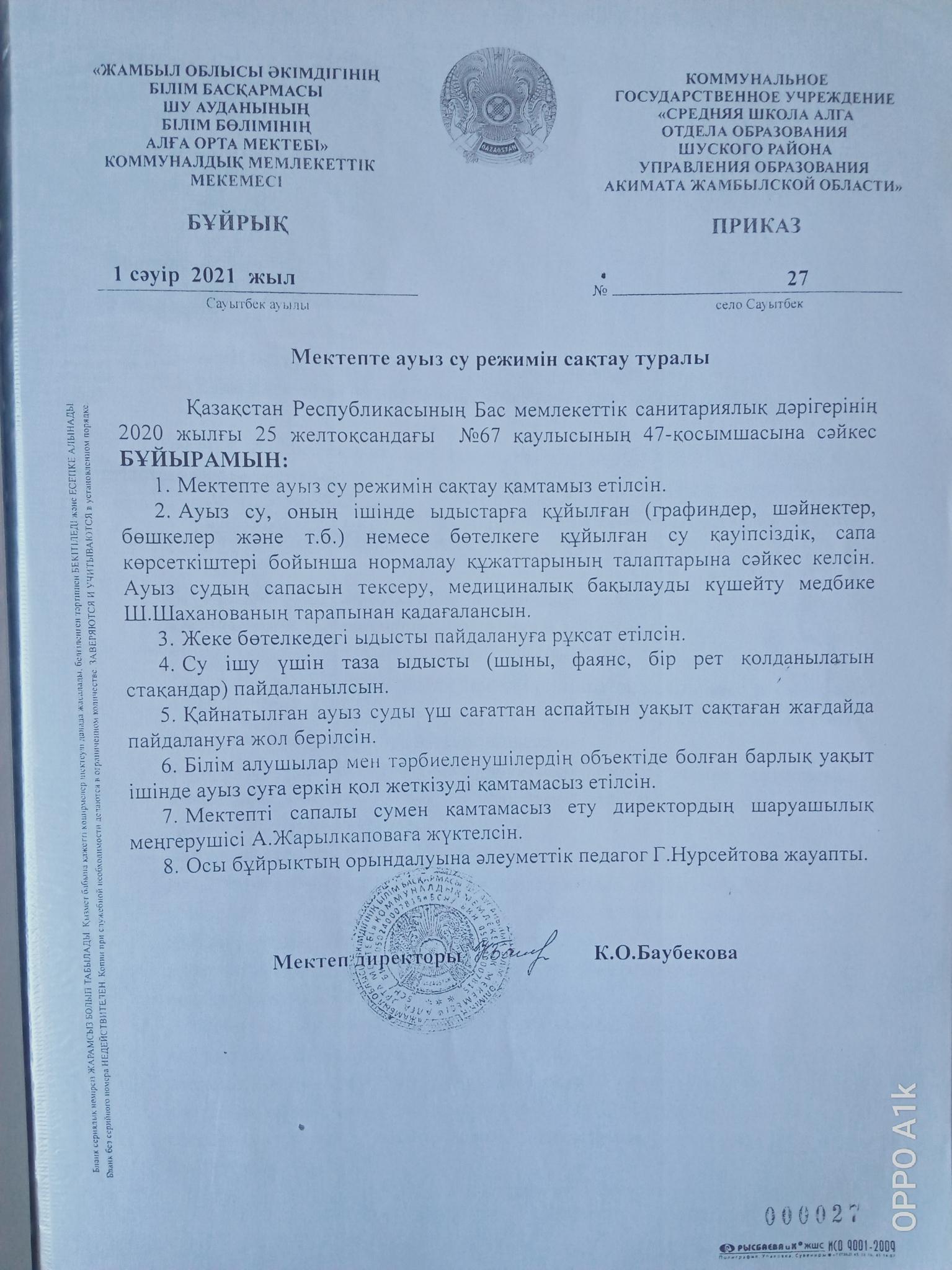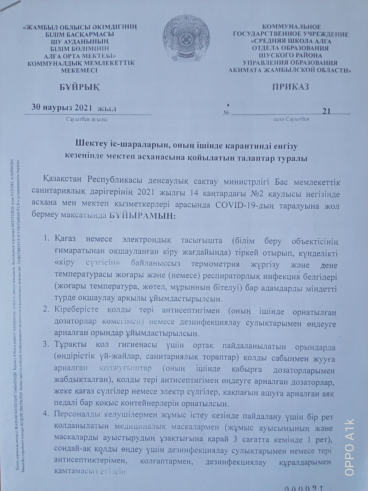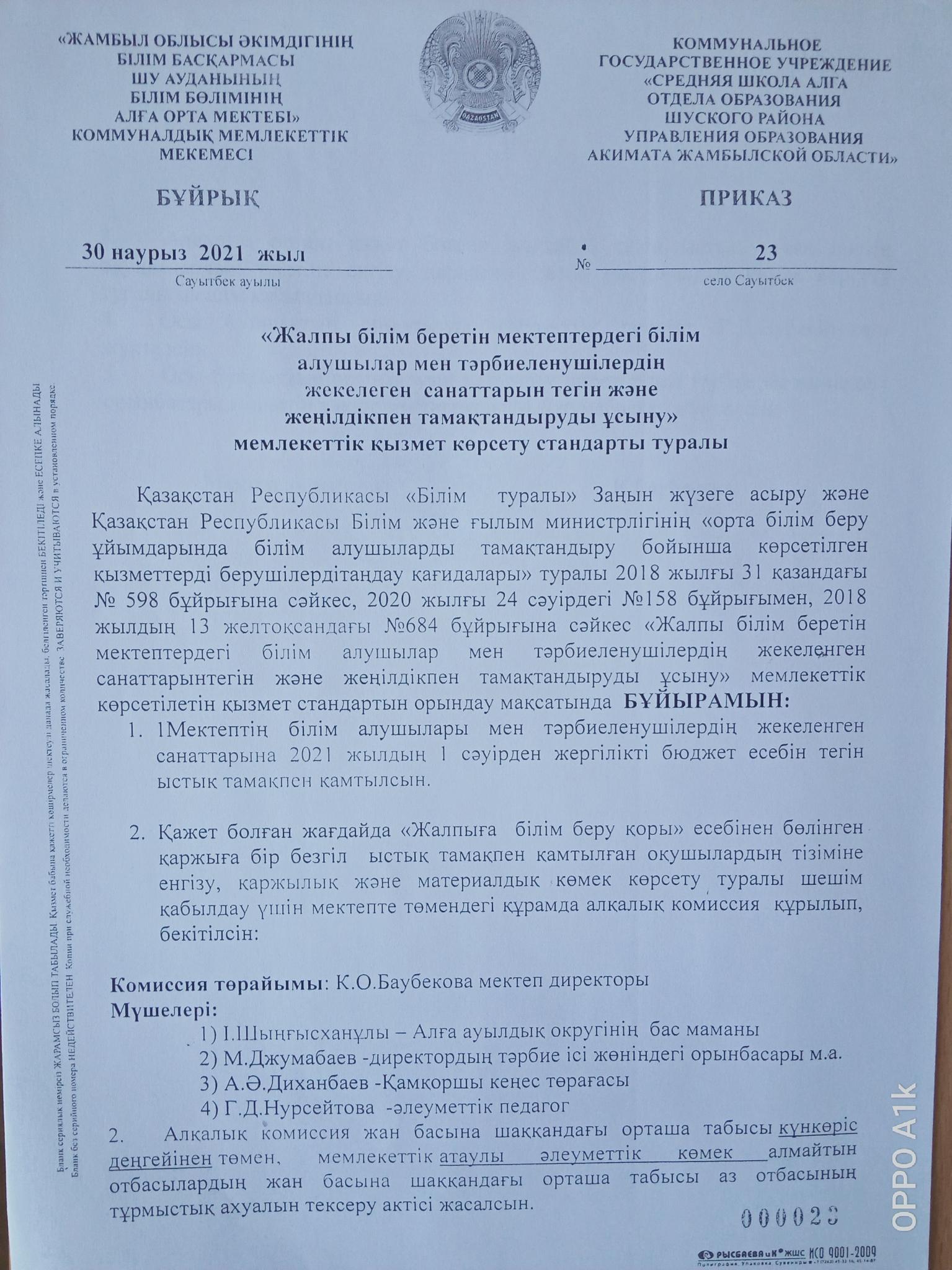 Жалпыға бірдей ыстық тамақпен қамтылған оқушылардың тамақтану уақыты » Алға шағын орталықты орта мектебі